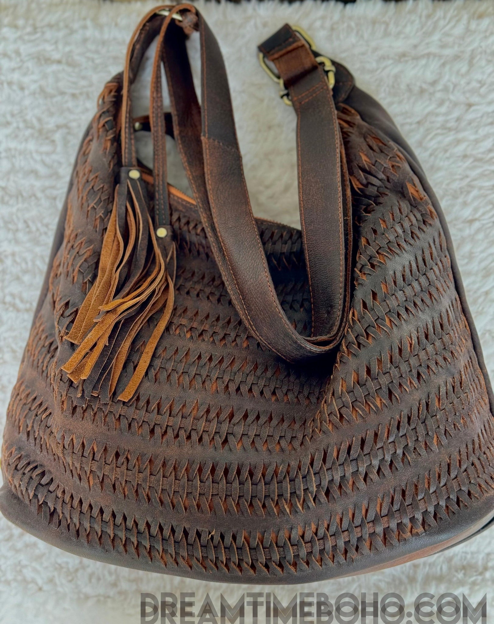 This Hand-Woven Gypsy Weave Slouch Bag combines effortless style with practicality. Crafted from soft, lush leather, its intricate hand woven design brings the bohemian charm, making it the perfect accessory for any free-spirited wardrobe.